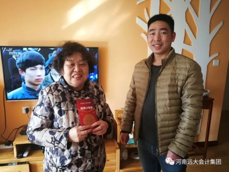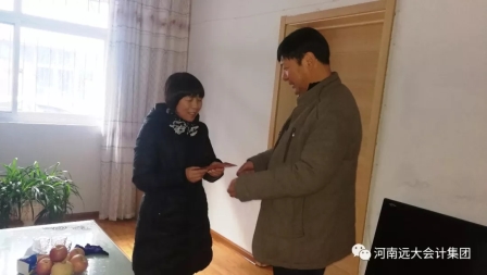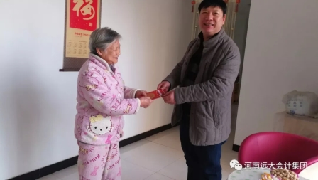 2018年1月31日至2月3日,河南遠(yuǎn)大會(huì)計(jì)集團(tuán)行政運(yùn)營(yíng)中心先后到15名員工父母家中,帶著集團(tuán)的情意送去感恩金,并通過(guò)銀行匯款的形式向8位家在外地的員工父母發(fā)放感恩金。